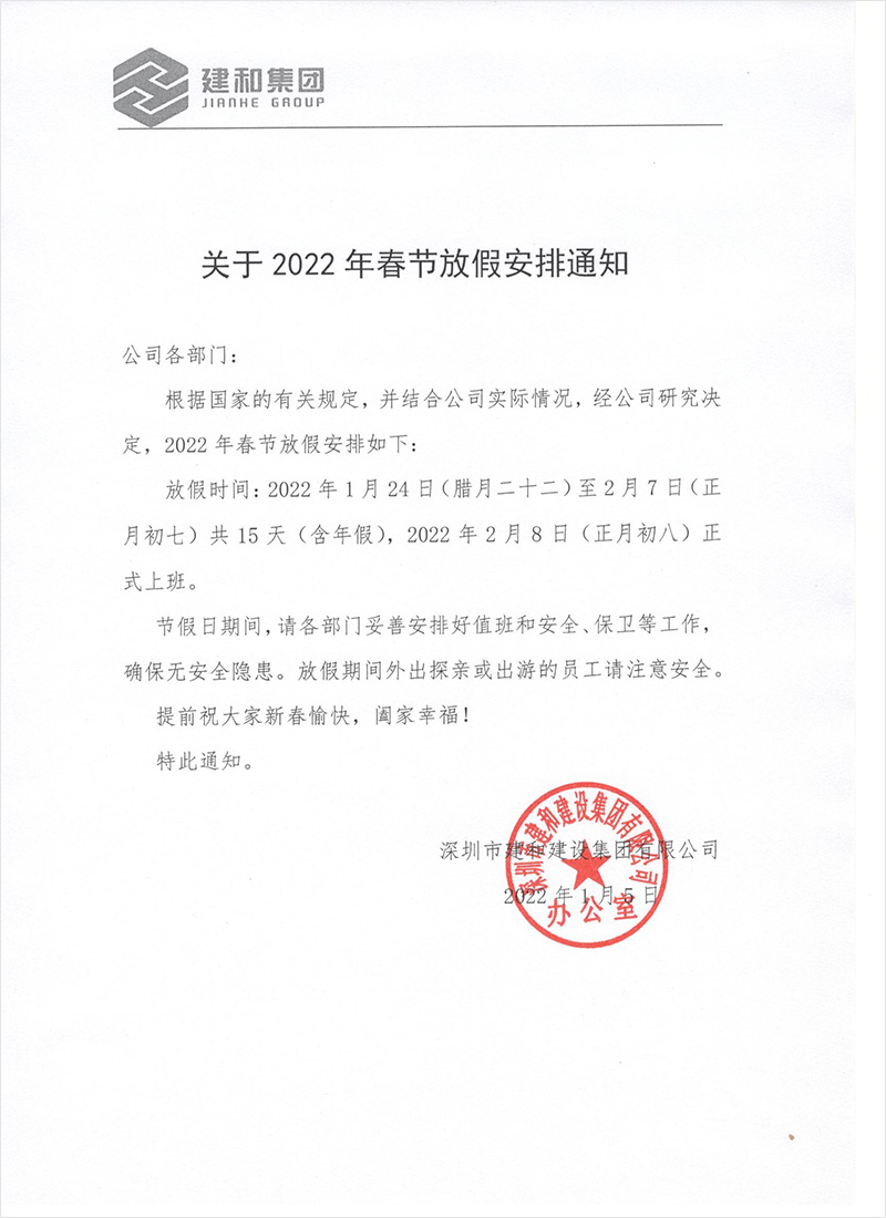 關(guān)于2022年春節(jié)放假安排通知
